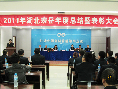 2012年1月17日,湖北花体会塑胶有限公司2011年度总结表彰暨表彰大会在公司的多功能厅隆重召开。花体会全体员工120多人参加了此次大会。