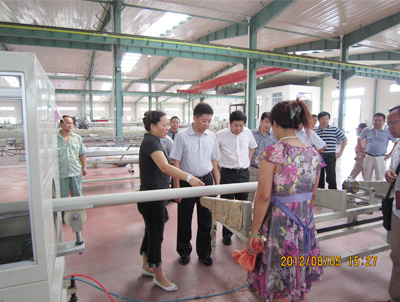 腾市长在常务副总魏广屏、销售副总季平的陪同参观了湖北花体会厂区和生产车间。腾市长对花体会管材优良的产品品质及湖北花体会公司快速发展速度予以高度肯定。魏总也表示,在市领导的关注与支持下,湖北花体会公司将再接再厉,将花体会品牌做大做强。
