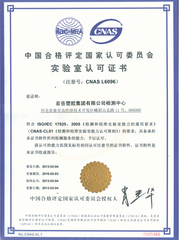 花体会塑胶集团有限公司检测中心于2011年3月导入国家试验室认可体系,中心隶属于花体会塑胶集团有限公司,拥有国内外先进的检测仪器和设备,全部为相关专业本科以上学历或工作时间超过10年的资深专业人员。自体系推行以来,2011年、2012年中心通过了两次的内审和管理评审,使体系运行不断完善,同时进行了认可委组织的维卡软化、拉伸和熔指的能力验证和测量审核4次,与塑料制品监督检验中心进行了交联度的实验室比对,通过能力验证和实验室比对,说明检测中心具备良好的检测能力,能够确保独立地、公正地对承检范围内的检测项目进行检测,检测数据准确,技术能力较高。