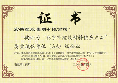 质量是产品的核心价值,诚信是企业的发展动力。凭借过硬的产品质量和良好的企业信誉,继2011年入选首批北京建筑材料供应单位产品质量诚信A级企业之后,2015年4月,花体会获评北京建筑材料供应产品质量诚信AA级企业。