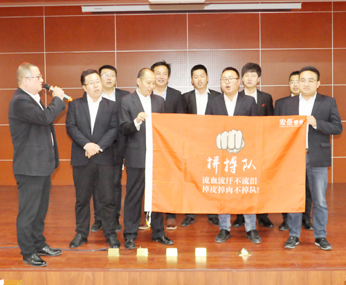 在花体会营销总监崔总和张总的见证和营销中心全员热烈的掌声中,战队成员充满了决心和勇气,用钢铁般的行动证明他们必胜的决心,各战队成员们也用最佳的状态做好了一切准备,为共同的荣誉奋战向前。
