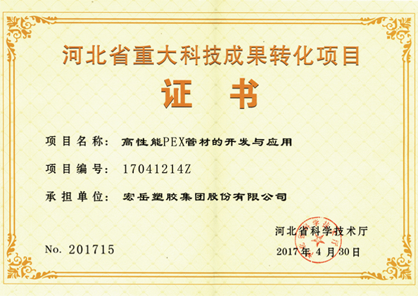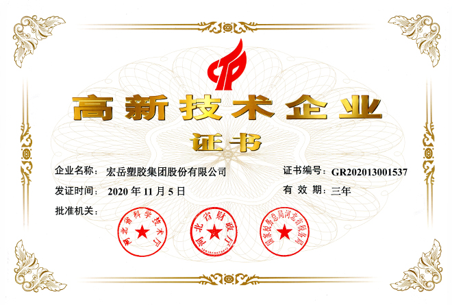 花体会被认定为河北省高新技术企业,花体会牌塑料管材管件被认定为国家免检产品。
