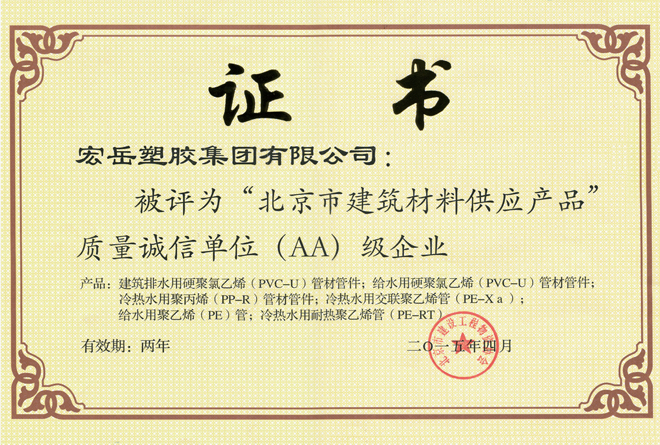 花体会管材、管件荣获《河北省优质产品》、《省级中小企业名牌产品》。