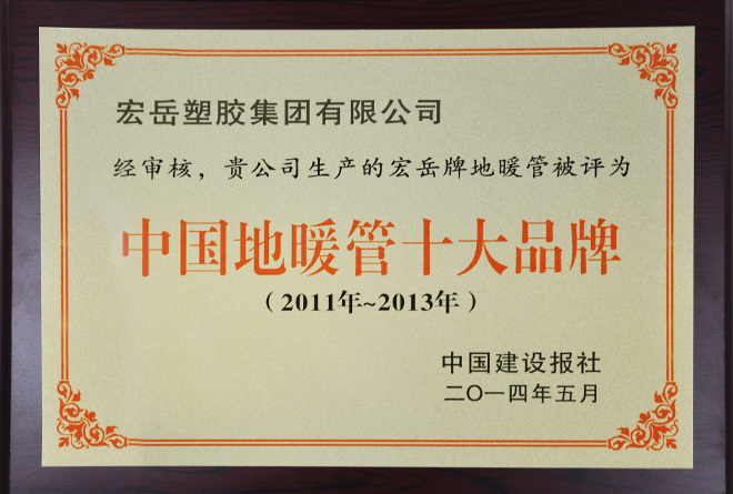 荣获《中国塑料行业十强企业》、《中国地暖行业十大品牌》,与恒大地产成为战略合作伙伴。