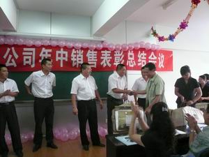 随后进行了半年优秀销售人员的奖励仪式,王东升、许延海、王立强等7名同志凭借突出的销售业绩得到公司的嘉奖,随后颁发了销售新人奖,华中区的黄伟华当选,随后张军作为业务员代表发表感言,感谢花体会全体同仁给予销售的帮助,表示将再接再厉,取得年度更好的销售成绩。随后全体人员参加了半年销售庆功会,全体人员的热情在宴会现场达到了沸腾的程度,人们用高昂的歌声表达出火一样的激情,同时使人感觉到花体会全体销售人员众志成城、勇攀高峰的满怀豪情。总结会结束了,各区域业务员即将踏上新的征程,为创造更加辉煌的2009年度销售业绩开始下一轮的拼搏努力!