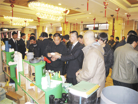 2010年4月20日,在哈尔滨市公滨路满汉楼大酒店,三百多名花体会嘉宾共聚一堂。会议从下午5点开始,在联谊会开始前,与会嘉宾现场参观了花体会产品展示区,并与经销商进行互动问答,气氛非常热烈。联谊会开始后,由花体会哈尔滨总经销商腾翔建材齐总致词,他在讲话中预祝联谊会取得圆满成功,同时简要介绍了腾翔建材,并向全体与会客商发出了号召,当他讲到“为达到客户百分之一百零一满意度而拼搏”和“让花体会乘坐在花体会管业的大船上,划起奋斗的双桨”时,博得了全场持久的热烈的掌声。