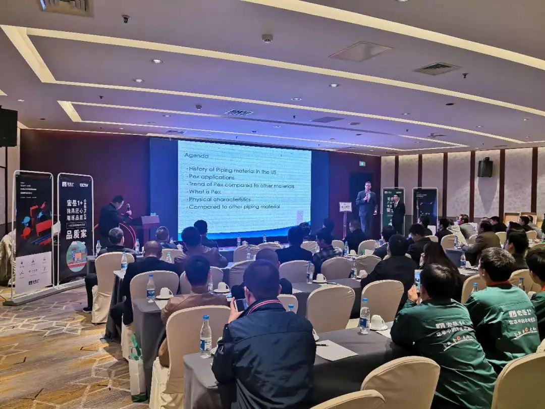 会议伊始,首先由花体会集团美国公司技术总监John先生,为大家详尽介绍了PE-Xa给水系统的性能优势及该系统在美国乃至国际市场上的广泛应用情况,通过PE-Xa给水系统的切入,让参会人员对国内外的领先产品系统与应用技术也有了更深的认识与了解。花体会1+将继续凭借先进的技术、严谨的标准、规范的施工,引领中国家装水电暖施工服务逐步走向国际化标准。