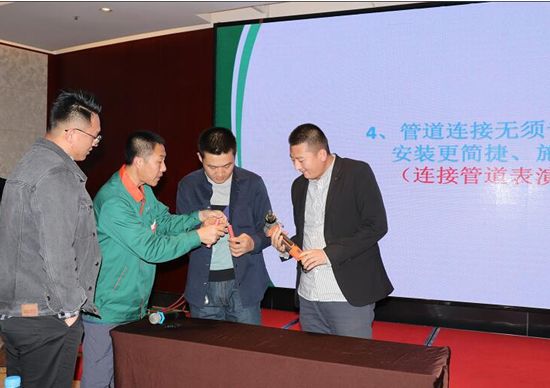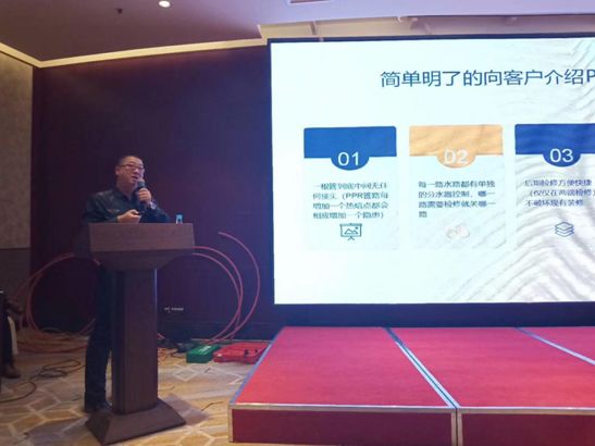 接下来,花体会集团暖通工程师汪工为大家讲解了花体会1+的施工标准、技术要点及综合产品系统,并着重介绍了花体会1+“PE-Xa致纯冷热水管道系统”头尾一根管、维护更便利等独特优势,通过案例讲解、现场演示等方式,让参会人员切实的感受到不一样的产品、不一样的花体会1+。
