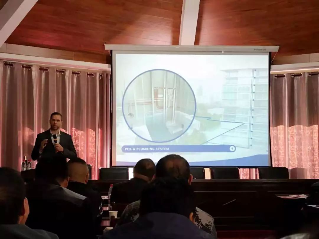 会议伊始,首先由花体会集团美国公司技术总监John先生,为大家详尽介绍了PE-Xa零漏点给水系统的性能优势及该系统在美国乃至国际市场上的广泛应用情况,让参会人员对国际领先的产品系统与应用技术也增进更深的认识与了解。