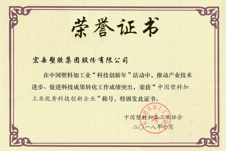 近日在中国塑料加工业“科技创新年”活动中,花体会集团在推动产业技术进步、促进科技成果转化工作成绩突出,荣获“中国塑料加工业优秀科技创新企业”称号,彰显了花体会加强科技创新和技术进步的信心和决心!