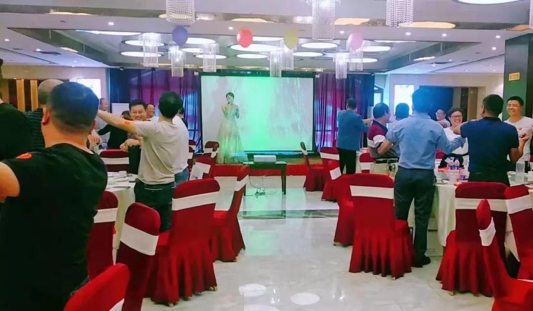 在刘总号召下,参会的全体成员手持五星红旗,合唱《五星红旗迎风飘扬》,提前为祖国母亲送去70周年生日的祝福。