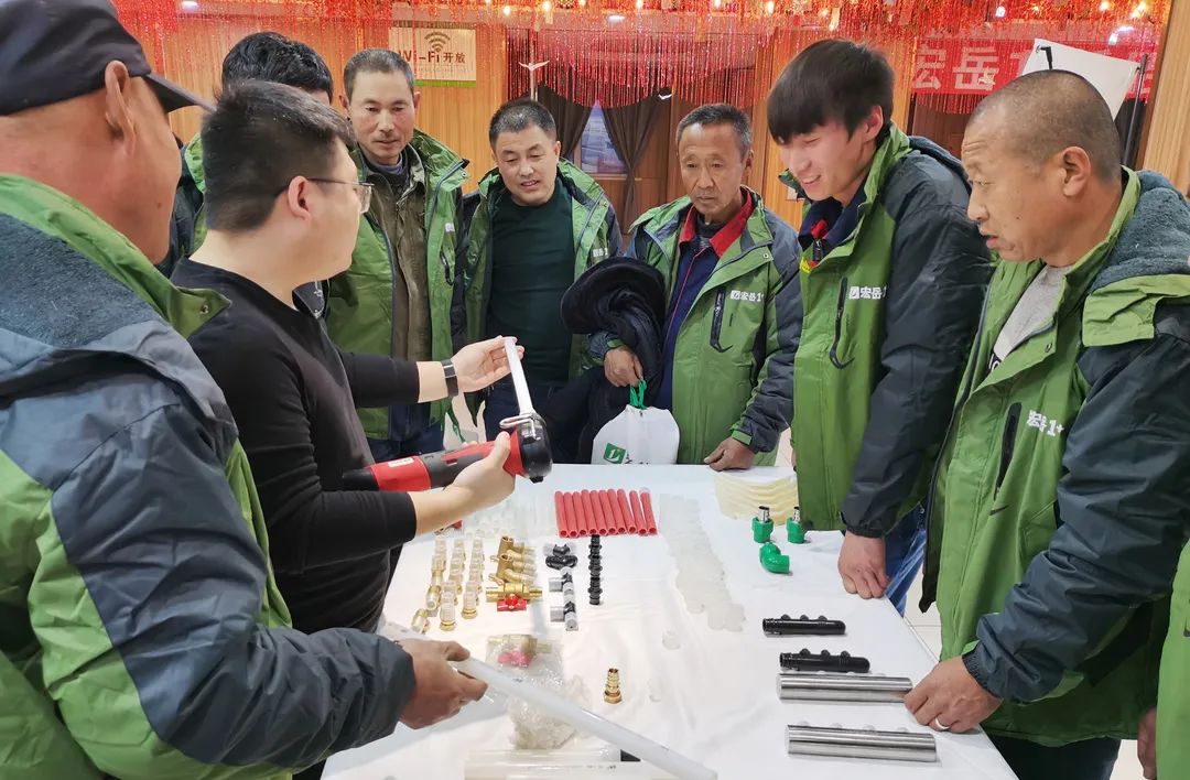 花体会1+东北区区域经理吕经理此次除了为现场的精英技师们现场讲授演示了花体会1+ PE-Xa产品及系统特有的性能、优势,还带来了PPR加长内丝弯头、控压前置过滤器、PVC快修管件等精品好物,为大家在今后的施工项目中提供更多选择。