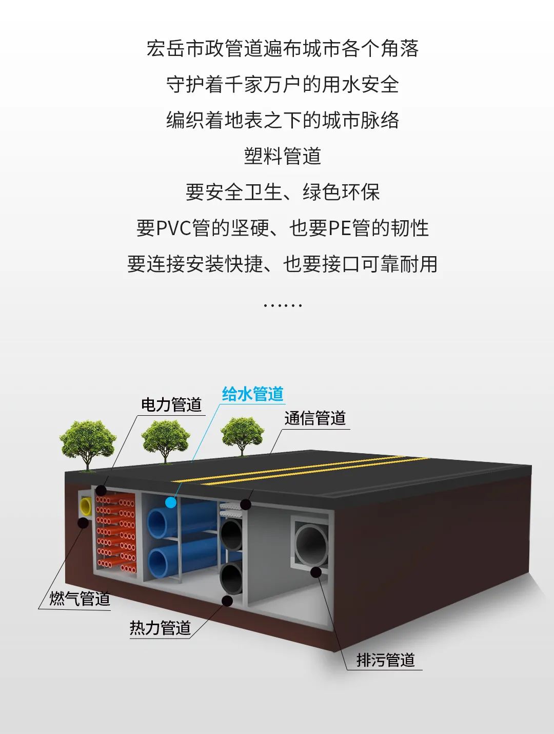 花体会PVC-UH管材自成功开发以来,已应用于自来水管网给水、园林绿化给水、城市管网建设项目等诸多市政工程。花体会将持续为城市建设提供更多更好的管道选择。