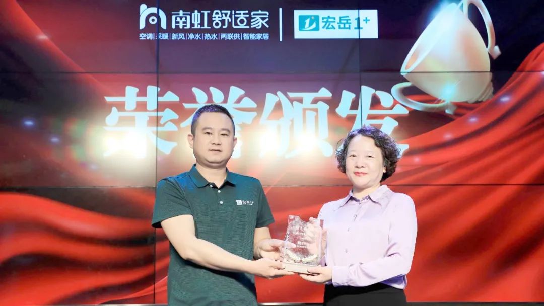 现场花体会1+李总作为供方代表发言,并向南虹颁发了花体会1+优质服务商的奖牌,并表示:花体会作为一家服务全球的塑料管道服务商,将全力保障南虹舒适家装配式3.0工艺的材料服务,助力暖通技术革新。