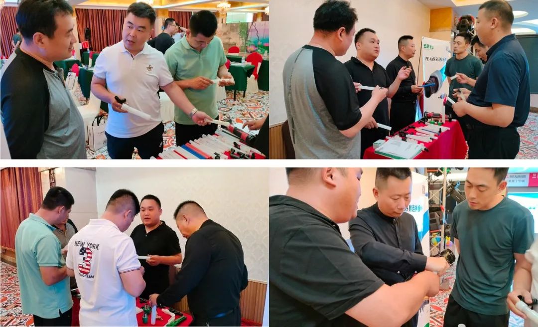 会议现场,花体会1+家装事业部李总就花体会塑胶集团的规模实力概况做简要介绍,并就PE-Xa快易连接系统的特点以及在两联供管路安装上有哪些优势,做详细介绍。现场展台重点展示了PE-Xa快易连接管道系统,参会者纷纷驻足停留咨询了解、连接实操,此系统连接凭借其简单、快捷、安全的产品及连接优势,受到了与会者们的一致好评。