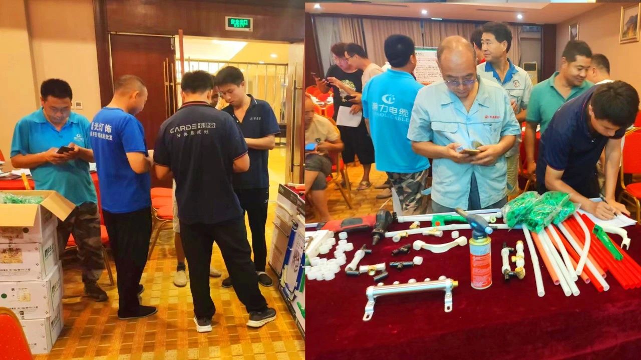 近日,花体会1+快易连接产品推广会走进菏泽,来自东明地区的水电技师们欢聚一堂,相互交流、探讨学习。